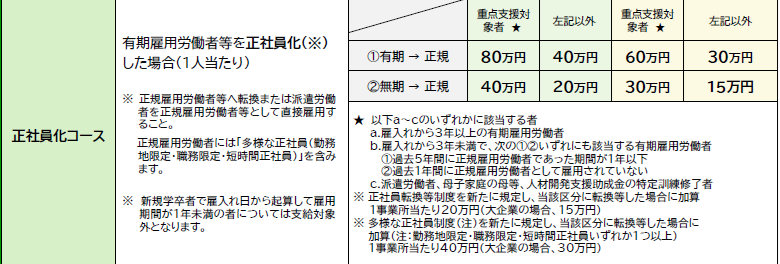 今年度は短時間正社員や地域限定正社員などの多様な正社員を就業規則に新たに規定した場合はさらに40万円の加算